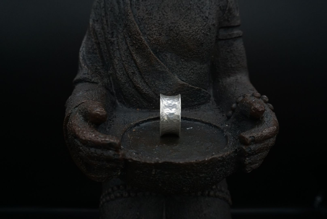 Der Agnih Ring ist ein matter gehämmerter Silberring. Der breite Silberring hat eine nach außen gewölbte Form, welche ihn zu etwas ganz besonderem macht.