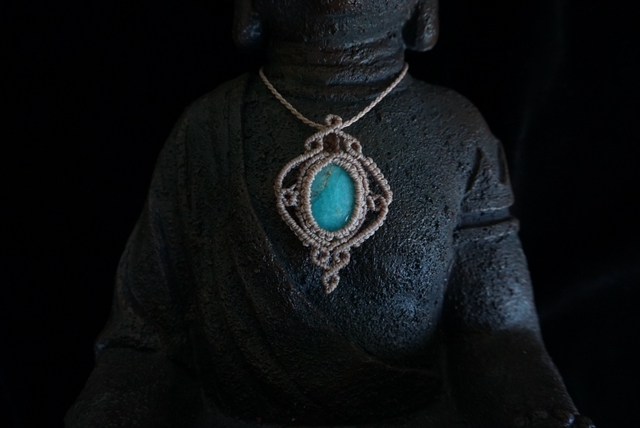 Ausschließlich qualitativ hochwertiger Macrame Garn der Marke Linhasita wurde für dieses Schmuckstück verwendet. Die Kette ist wasserfest.