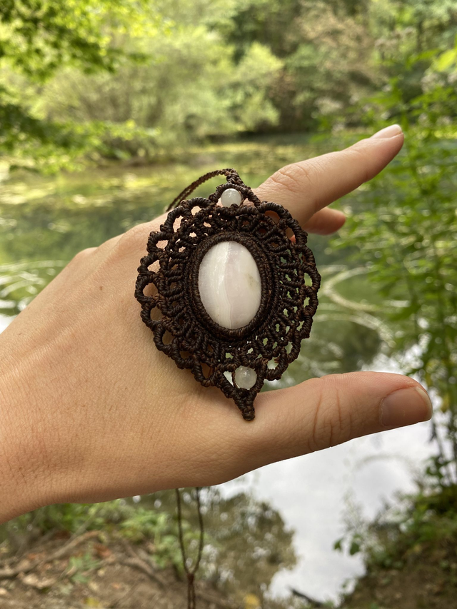 Handgeknüpfte Macrame Kette mit einem natürlichen andischen Opal aus Peru.