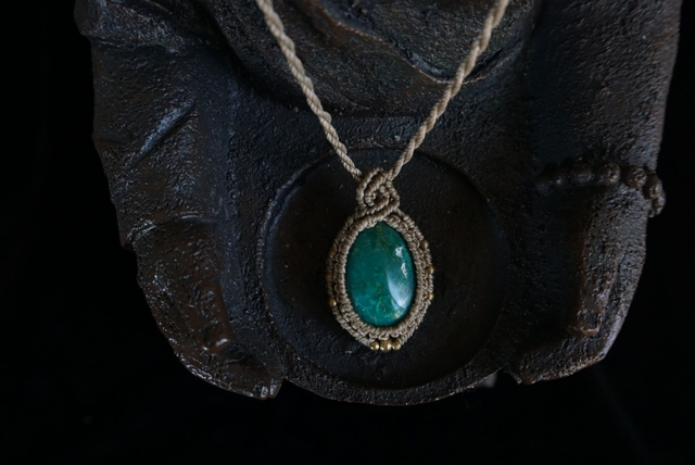 Ausschließlich qualitativ hochwertiger Macrame Garn der Marke Linhasita wurde für dieses Schmuckstück verwendet. Die Kette ist wasserfest.
