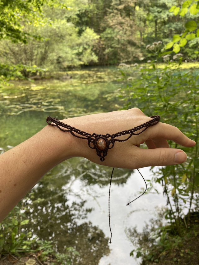 Ausschließlich qualitativ hochwertiger Macrame Garn der Marke Linhasita wurde für dieses Schmuckstück verwendet. Die Kette ist wasserfest.