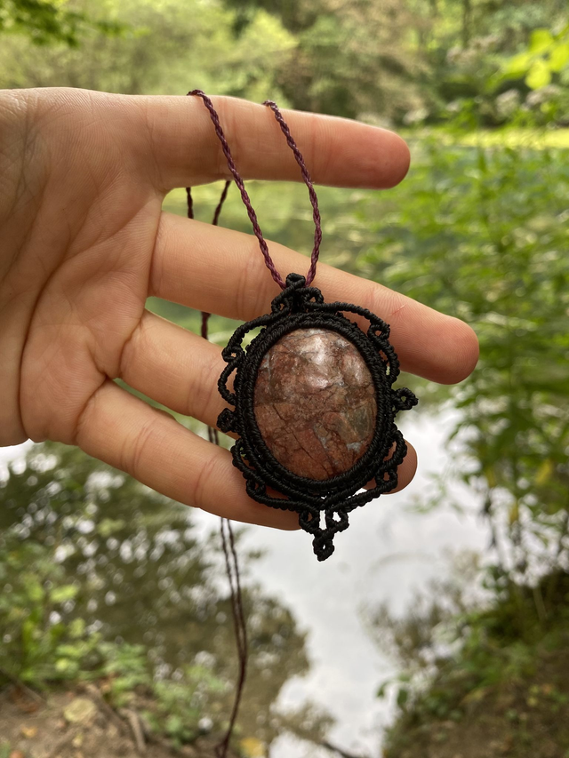 Ausschließlich qualitativ hochwertiger Macrame Garn der Marke Linhasita wurde für dieses Schmuckstück verwendet. Die Kette darf nass werden und verliert nicht die Farbe.