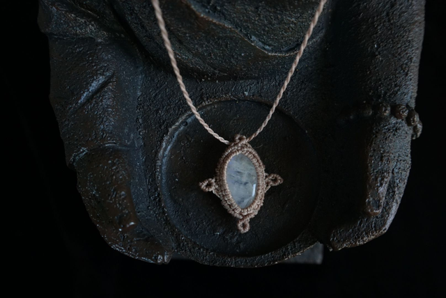 Handgeknüpfte Macrame Kette mit einem natürlichen Mondstein.