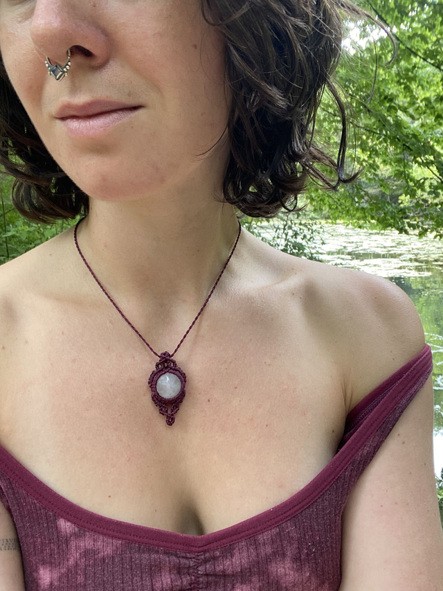 Ausschließlich qualitativ hochwertiger Macrame Garn der Marke Linhasita wurde für dieses Schmuckstück verwendet. Die Kette ist wasserfest.